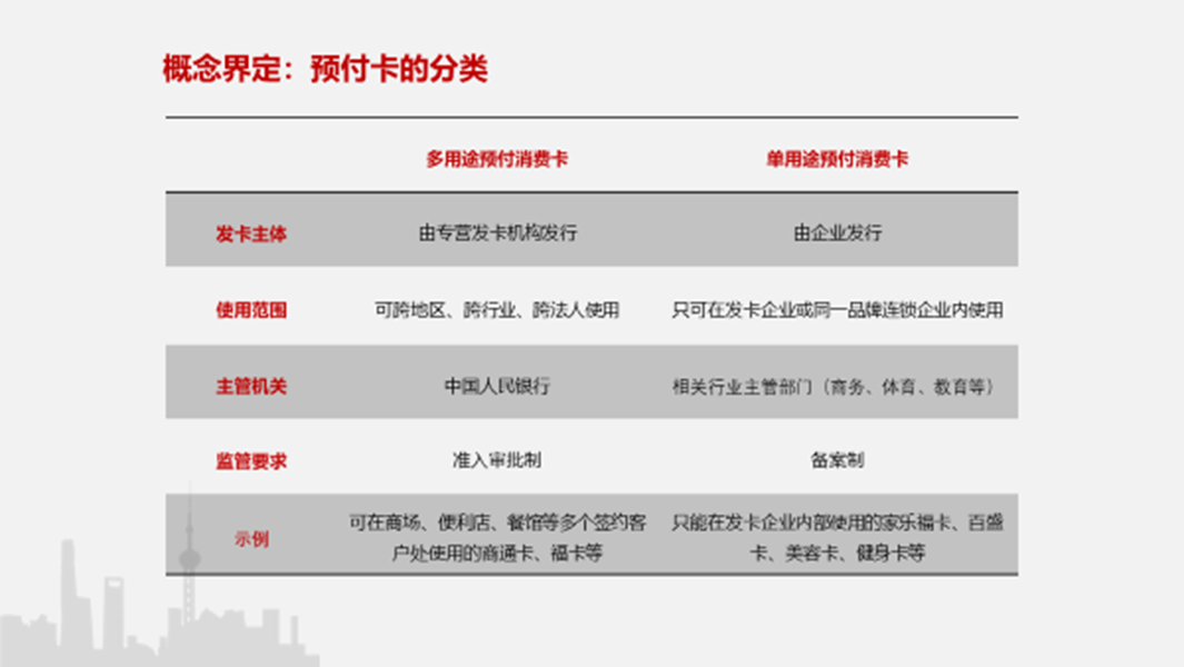 - 那么,对于经营者来说,正确理解什么是预付卡,以及我国对预付卡所实施的监管措施具体是怎样的,对其合规开展预付卡经营活动至关重要。